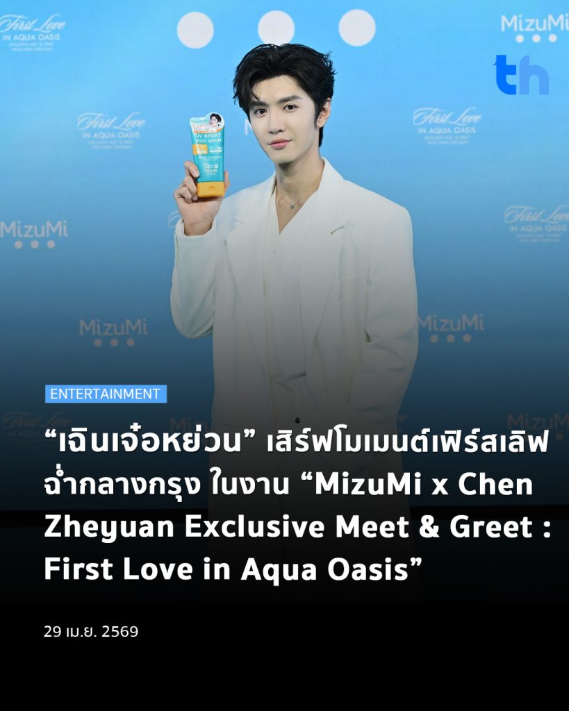 ปิดฉากอย่างสวยงามกับอีกหนึ่งอีเวนต์สุดฮอตทำถึงทุกโมเมนต์ กับปรากฏการณ์ “เฉินเกอเอฟเฟกต์” ที่เรียกเสียงกรี๊ดได้ตลอดทั้งงาน เมื่อ MizuMi (มิซึมิ) แบรนด์สกินแคร์ชั้นนำของเมืองไทย พาพระเอกหนุ่มสุดฮอต Chen Zheyuan (เฉินเจ๋อหย่วน) มาเสิร์ฟโมเมนต์เฟิร์สเลิฟให้แฟนๆ ในฐานะ Brand Ambassador กลุ่มผลิตภัณฑ์กันแดด ในงาน “MizuMi x Chen Zheyuan Exclusive Meet & Greet: First Love in Aqua Oasis” ที่ centralwOrld PULSE ศูนย์การค้าเซ็นทรัลเวิลด์ เมื่อวันศุกร์ที่ 24 เมษายน พ.ศ. 2569 ที่ผ่านมา
