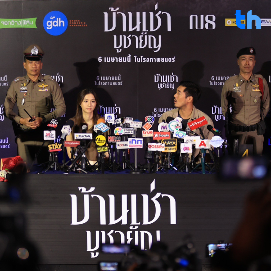 ‘จีดีเอช’ ร่วมกับ ‘เอ็นเอท สตูดิโอ’ จัดงานแถลงข่าวเปิดตัวหนังผีเรื่องใหม่ ‘บ้านเช่า..บูชายัญ’ โดยเนรมิต SF World Cinema (โรงภาพยนตร์ที่ 9) ชั้น 9 ศูนย์การค้าเซ็นทรัลเวิลด์ ตั้งโต๊ะจำลองสถานการณ์แถลงข่าวคดีบ้านเช่าที่เกิดเหตุสะเทือนขวัญ โดยมี 2 สามี ภรรยา ‘กวิน’ รับบทโดย เวียร์ ศุกลวัฒน์ คณารศ และ ‘หนิง’ รับบทโดย มิว นิษฐา จิรยั่งยืน มาร่วมให้ปากคำถึงความเสียหายจากคดี ‘บ้านเช่า..บูชายัญ’ โดยมี อ๊อฟ ชัยนนท์ หาญคีรีรัตน์ รับหน้าที่เป็นผู้ดำเนินการสำหรับการแถลงข่าวของคดีนี้