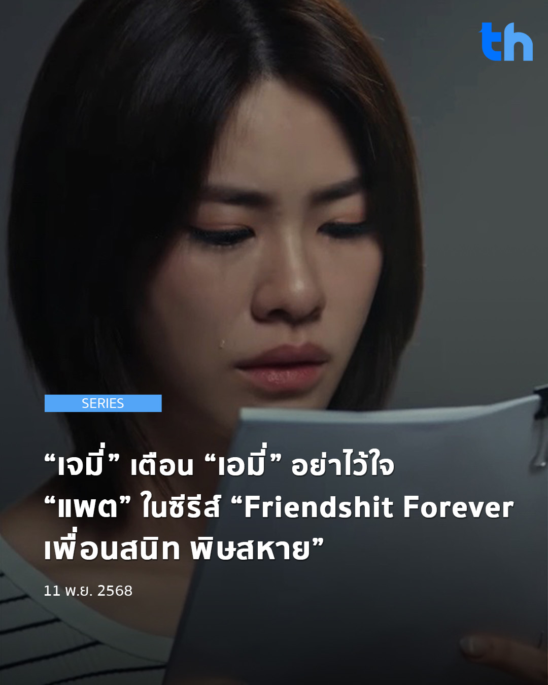 Share Facebook Twitter Email “ทิวลิป” (เอมี่-ทสร) เข้าร่วมออดิชั่นหนังสั้นคณะนิเทศศาสตร์ของรุ่นพี่ “วาววา” (เจมี่-จุฑาพิชญ์) ตามคำชวน ซึ่ง “วาววา” ก็ได้พูดเตือน “ทิวลิป” ให้ระวัง “ใบข้าว” (แพต-ชญานิษฐ์) เพราะดูเป็นคนไม่น่าไว้ใจและเพิ่งรู้จักกันได้ไม่นาน แต่ “เต๋า” (นิว-ฐิติภูมิ) รวมถึง “ใบข้าว” กลับพูดให้ “ทิวลิป” เกิดความสับสนว่า “วาววา” น่าจะเป็นเพื่อนที่ไว้ใจไม่ได้! มิตรภาพระหว่างพวกเขาจะเป็นยังไงต่อไป? ใครกันแน่ที่เป็นเพื่อนร้าย!? ตามลุ้นพร้อมกัน ติดตามชมซีรีส์ “Friendshit Forever เพื่อนสนิท พิษสหาย” ในวันอังคารที่ 11 พฤศจิกายนนี้ เวลา 20:30 น. ทางช่อง GMM25 และทางแอปพลิเคชั่น TrueVisions NOW เท่านั้น และอัพเดททุกความเคลื่อนไหวได้ที่ GMMTV