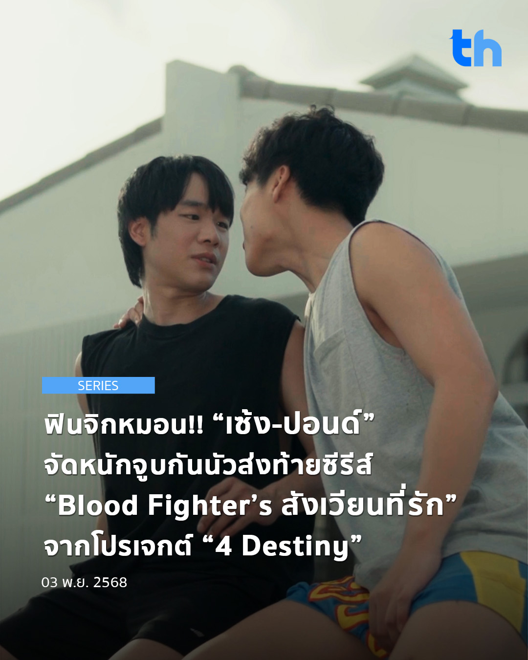 แฟน ๆ เตรียมจิกหมอน เมื่อ “เซ้ง-ปอนด์” เสิร์ฟฉากฟิน จูบกันนัวส่งท้าย “Blood Fighter’s สังเวียนที่รัก” ซีรีส์วายแนว แอคชั่น คอมเมดี้ หนึ่งใน 4 โปรเจกต์สุดยิ่งใหญ่ “4 Destiny” จากค่าย เมค อะ พิคเจอร์ โปรดักชั่น กำกับโดยผู้บริหารค่าย “ผักกาด กาจกัมปนาท อยู่คงพันธุ์” บอกเลยในตอนจบนี้พวกเขาสอนมวยกันท่าไหนไม่รู้ เพราะนอกจากฝีมือจะเก่งกาจขึ้นแล้ว…ความรู้สึกของทั้งคู่ที่มีให้กันยังเพิ่มมากขึ้นอีกด้วย